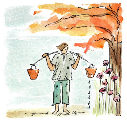 Depois de dois anos do que percebeu ser um fracasso amargo, falou com a mulher à beira do riacho. “Estou envergonhado de mim mesmo e quero me desculpar com você porque essa rachadura no meu corpo faz com que a água vaze todo o caminho de volta para sua casa. Devido à minha falha, você não recebe o valor total do seu esforço.”